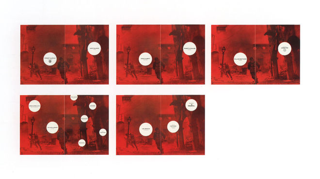 The release of Attack was announced in the Hollywood Reporter in an unprecedented ten-page advertisement designed by Saul, which itself reads as a moving sequence. Each double-page spread features the same blood-red still with men in combat gear moving across the frame, while the credits unfold in clear type within bullet-like white circles.