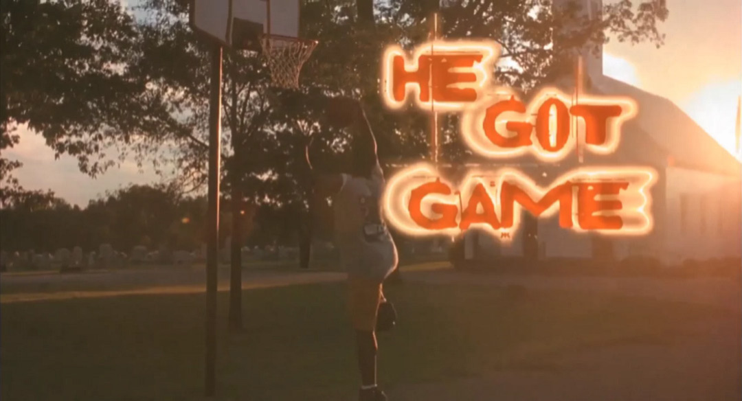 In Spike Lee’s opening sequence to He Got Game, basketball is the myth, the great leveller, the new American dream. The combination of Malik Hassan Sayeed’s stunning cinematography and the grand orchestration of Aaron Copland’s “John Henry” takes the game to new heights. In using the slow, portentous music of Copland, Lee aligns his film with the American heartland, making the point that basketball is as American as cowboys and apple pie. The piece, dramatic and grave, underpins the action, lending the scenes of play a sense of burden, a great weight.