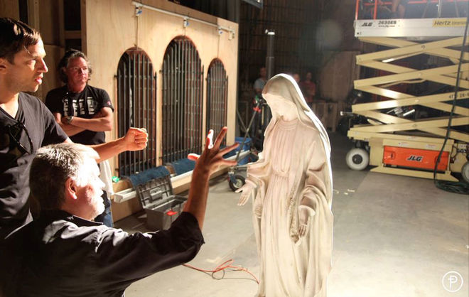 Title Designer Kyle Cooper directing a shot during the production of the American Horror Story: Asylum title sequence.