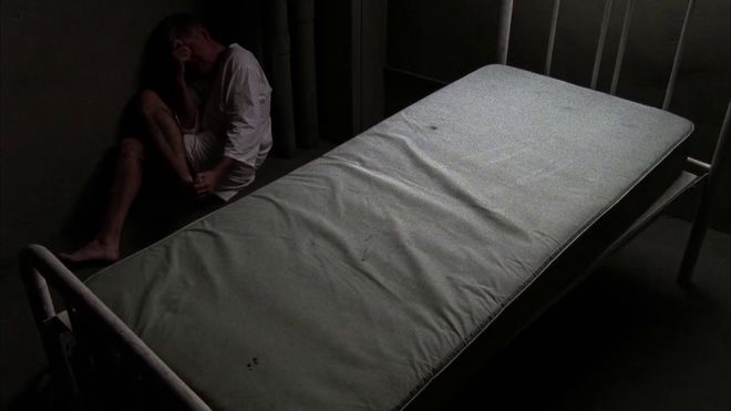 Kyle: On Asylum, I said get a pig’s head because some horror movies have pig’s heads in them. I needed something disturbing to put on this bed we were going to shoot. So we got it and we start late because we couldn’t get rental equipment or something. We were shooting on the sets that season so it feels bigger. There was one set up where I was trying to get this actor to rock back and forth on the bed and she just didn’t want to do it, so I went in. So in the Asylum title there are three shots, one of a person cowering in the corner, walking back and forth like Rain Man and seated on the bed which were me.