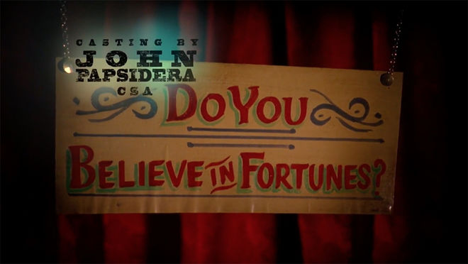 The team was presented with a variety of material to work with, including B-roll footage Wong had shot of rollercoasters, funhouses and the merry-go-round. Wong’s team also provided Picturemill with a series of 8’ x 15’ printed banners featuring vividly painted carnival figures: the bearded lady, the “Electric Twins” (twin sisters strapped into electric chairs – a visual nod to the tanning bed deaths), a sword swallower, the Amazing Metal Eater and finally, the Devil.  In order to fulfill the fortune teller/tarot card imagery, Picturemill rented a fortune teller dummy and photographed it to add to the sequence.