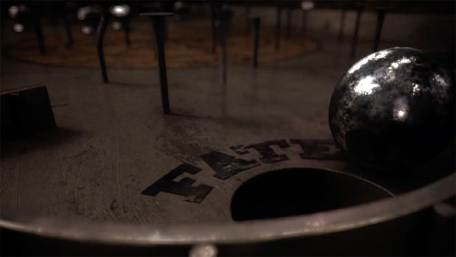 The final component for the sequence was the pinball machine. Lebeda’s team had initially pitched that the entire title sequence take place inside one. After some research, 3D artist Jon Block ended up animating it in CG as a stand-alone sequence – a methodical close up of the intricate mechanisms, from the bounce of the silver ball to its journey against jutting nails (also a foreshadowing of Erin’s death by nail gun).