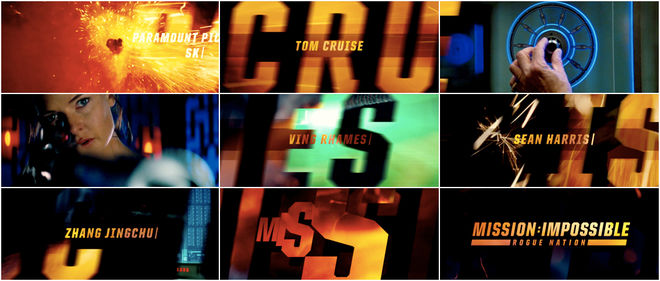 For the title sequences that bookend Rogue Nation, the fifth installment in the Mission: Impossible film franchise, LA-based studio Filmograph worked under fittingly impossible timelines to deliver not one but two sequences: an opening to declare the arrival of the film and a closing to round it off with levity, all at breakneck speed. The opening sequence acts as both trailer and primer, dousing the audience in style and rhythm while giving glimpses of the film to come. The familiar typography and that iconic Lalo Schifrin-composed score ground the sequences in the series’ origin as a ’60s television show, while stepping firmly into new territory.