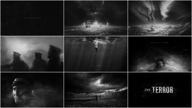 Adapted from Dan Simmons’ novel of the same name, The Terror follows Franklin (Ciaran Hinds) and his men during the calamitous voyage, a period in which Inuit locals became the only witnesses to the disaster. According to this fictionalized account, the bitter cold is not the only thing to fear north of the Arctic circle. For the opening of The Terror, the showrunners and design studio Elastic hauntingly convey the story of this doomed expedition with a brisk, monochromatic main title sequence viewed through sheets of ice. As sun dogs turn to auroras, the ships — HMS Erebus and HMS Terror — are frozen in place, the crew bound in snow and darkness for the endless winter, driven to madness and worse. One by one the crew fades from view, those who remain setting off into a white wasteland and an unknown fate. WP