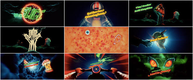 Slice and its opening join the recent trend of 1980s nostalgia seen in the neon-lit title sequences for shows Stranger Things (2016) and GLOW (2017) and films Atomic Blonde (2017) and Guardians of the Galaxy Vol. 2 (2017). In 2018, an animated main title sequence is rare in film but Slice delivers the goods. LL