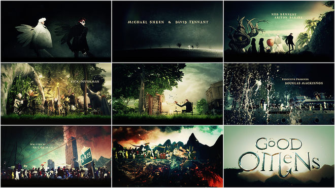 This is the premise of the opening credits to Good Omens, the six-episode TV adaptation produced by Amazon Studios and BBC based on the popular 1990 novel by Terry Pratchett and Neil Gaiman. The ragbag opening, which combines the characters, humour and surreal tone of the series with 3D objects, live-action elements, and original 2D illustrations, was created by London-based Peter Anderson Studio and features carnival-esque music by composer David Arnold. It all comes together to find a sweet spot somewhere between the otherworldly work of illustrator Dave McKean and the wacky collage of director-animator Terry Gilliam, a brilliantly “bonkers” concoction that sets the show apart while introducing its narrative, stars, and offbeat humour. LL