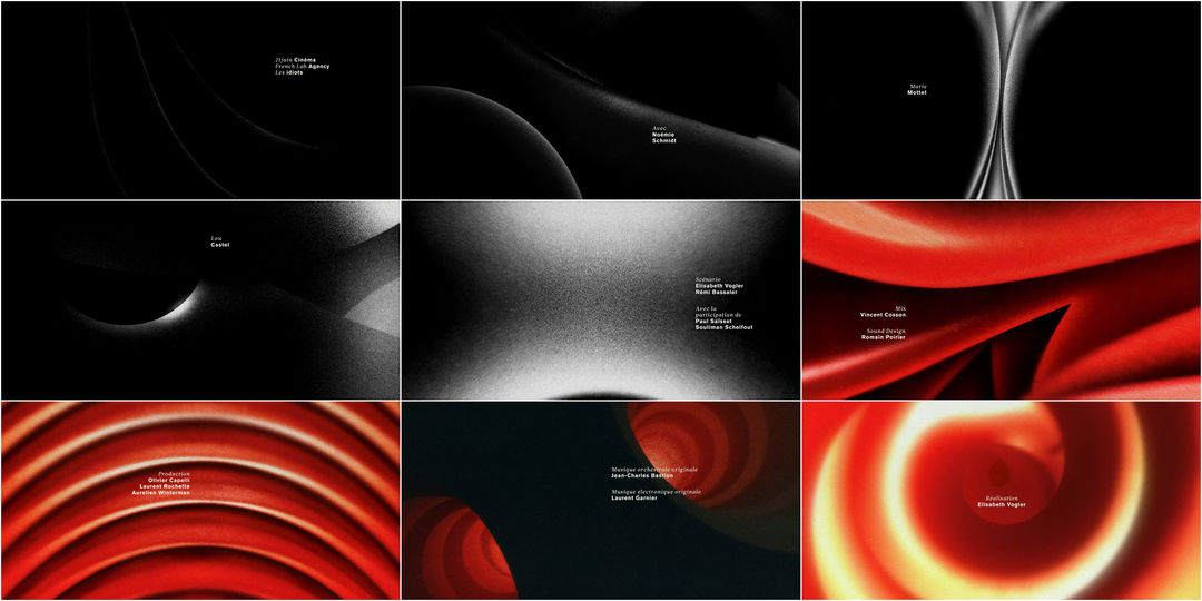 Its title sequence, designed by motion designer Nina-lou Giachetti and a small Paris-based team, embodies this indecision and abstract searching. Noisy textures and indefinite shapes abound, encouraging ideas of human forms, intimacy and distance. A shoulder, a collarbone, two cheeks rounding towards each other. There’s a dash of German Absolute film influence here, a nod to Walter Ruttman’s Opus animation experiments of the 1920s. The music by Jean-Charles Bastion and Laurent Garnier is at first delicate and circular, a smattering of synthesizers and strings, held fast by low notes stretching out like horns calling across dense fog. After an ominous minute, the colour arrives, deep red, and with it a throbbing bass beat, the shapes wrapping up into a rotating iris. Altogether, it’s a solidly realized piece of motion design, an exciting artistic choice for a first-time director and a fascinating breath of fresh air. LL