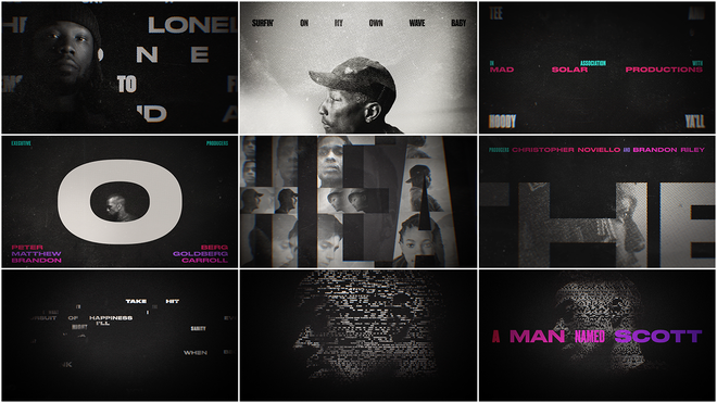 In the track “Speedin’ Bullet 2 Heaven,” the title theme to Amazon documentary A Man Named Scott, Cudi AKA Scott Mescudi speaks to his struggles and the performative nature of his life and work. The intimate documentary directed by Robert Alexander (HBO’s The Shop) mixes interviews and talking heads with more experimental clips and effects to paint an apt portrait of the troubled, influential rapper, songwriter and producer. For the film’s opening, creative director Clarissa Donlevy (His Dark Materials, The Last Dance) and a team at studio Elastic use the power of words and the strength of typography, differentiating the picture’s credits from Cudi’s lyrics with colour. The half-tone black and white portraits of Ye, Pharrell Williams, Willow Smith and other industry notables come together to create an enticing yet dark opener. In the end, the words coalesce to form Cudi’s sombre profile, an artist in repose but filled to the brim.