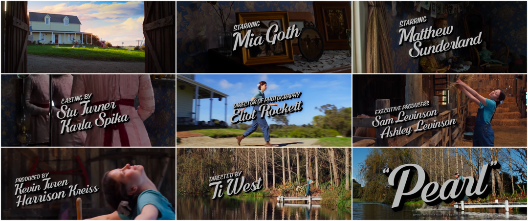 Ti West’s prequel to X, his other 2022 feature, follows a young woman (Mia Goth) starved for stardom. The first five minutes, over which we see the opening credits, are an introduction to the titular Pearl, her lot in life, and the lengths to which she will go to change it. The soaring music by composers Tyler Bates and Tim Williams, the costumes by Malgosia Turzanska and the visions of super-saturated country life situate the film within the American cinematic landscape. "To be honest, those costumes [by Malgosia Turzanska] go a long way," said director Ti West speaking with The Playlist. "That situates people in the world. Even in the opening of the movie with the title sequence, it was like, 'Okay, here’s the first five minutes of the movie that teach you how to watch this movie.'"