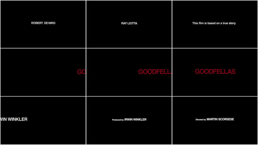 LW: The first title sequence that comes to mind for me is Goodfellas. It’s very simple. It highlights something for me about title sequences that I love. In the age of CGI, I feel like anything is possible. Sometimes that has the negative effect of people throwing the kitchen sink at a problem. You can do anything, so then the problem-solving evaporates, in a way. With a computer and some skilled technicians you can pretty much invent anything. For me, what’s great about title sequences is the idea.