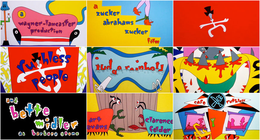LW: Another title sequence I love is Ruthless People. I really love this film. It’s an ’80s classic. I think Danny DeVito’s hilarious in it, Bette Midler’s hilarious. As we were saying before, with Kiss Me Deadly, I feel like this title sequence deserves extra credit because to do that back then was very difficult! Nowadays, every second movie and certainly every blockbuster has an animated title sequence. It’s mandatory if you’re making, say, a "Plastic-Man" movie that the title sequence needs to be like, CGI plastic forming a human being and we’re zooming through plastic! And the titles are whooshing up to the screen in 3D! But back then, you really had to do a lot of work to do an animated title sequence. Can you imagine going into a studio in the ’80s and being like [does a cheerful voice] "So I’m thinking the title sequence is animated!" [laughs] It would’ve been so hard. The fact that they did meant that this was important. It’s a comfort food movie for me. It reminds me of a very specific time in my life when my family would sit around and watch movies together. In the ’80s, I was growing up in the suburbs of Melbourne, Australia and a big ritual for my family was Friday movie night. My brother and I would go with my mum to the supermarket, she’d do all the shopping and she’d let us pick a movie from the video store. It was really a special time for me. We brought Ruthless People home one night and I remember I thought it was funny but my parents were just crying laughing. When you’re a bit younger, it’s curious when adults find something hilarious. You’re curious about adults and what they find funny. I remember as a kid loving the title sequence. It sort of tells you that this is gonna be dark, or this is gonna be really mean and mean-spirited. [laughs] I watched it again recently ‘cause I’m going through a nostalgia kick. I feel like Ruthless People might be the most 1980s movie ever.