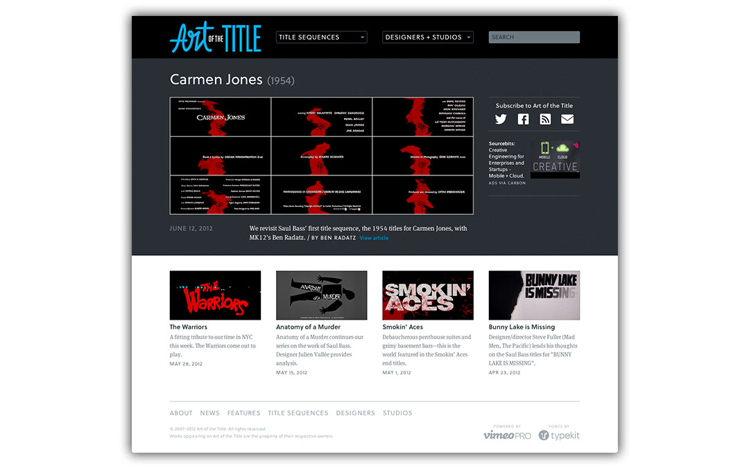 - Dropdown header navigation for access to title sequences, features, designers and studios