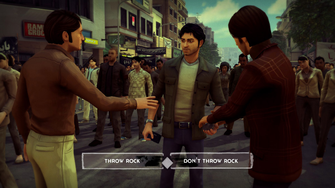 Blending together adventure game mechanics with film-style narrative and documentary storytelling, 1979 Revolution is described by its creators as a “vérité game”. The action takes place during the real-life events of the Iranian Revolution and puts players in the role of Reza Shirazi (Bobby Naderi), a young photojournalist who has recently returned home and finds himself caught in the middle of the tumultuous political struggle.