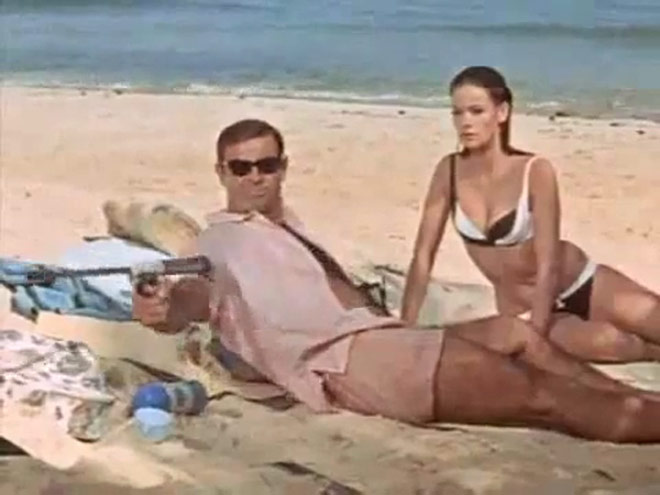 KD: When I began the project I started watching a lot of spy movies and researching them online. The early James Bond movies, especially Thunderball and You Only Live Twice. I know I sent the trailer of Thunderball to Steph quite a few times. It had a wipe I really liked as well as the way the characters were introduced, especially the women where they’d be framed ‘pretty’ but not doing much as their name would wipe across the bottom of the frame.