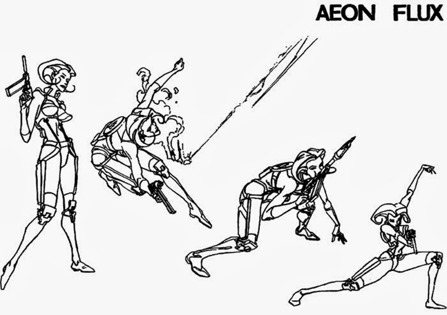 Peter: Well, this goes way back. I had the title “Æon Flux” in mind even before I designed the character or knew who the character was. It was just something that I had been thinking about while creating characters and stories for a long time. I don’t know how it is with other artists, but for me, it’s just a constant process of creating and revising and then finally, this idea I had been gestating for years ended up taking that final form. It was originally attached to a concept that was completely different from what it ended up being attached to. I thinking about the meaning of those words, with “aeon” just being the archaic spelling of “eon” which just means a long period of time as well as a term in gnosticism. Some people have picked up on that, that “aeon” refers to an angel-like figure in gnosticism that’s between human and the divine. I don’t even subscribe to that doctrine, though I like it in concept. “Flux” just referred to the flow of time. I just thought the two words had a good feeling and flow about them, it was mysterious. For a while, I resisted calling the Liquid TV show Æon Flux because I thought that perhaps it was too obscure or that I should save it for something else. At the time, I thought it was just going to be the one 12-minute series of shorts and then I’d be done. It ended up becoming something much bigger.