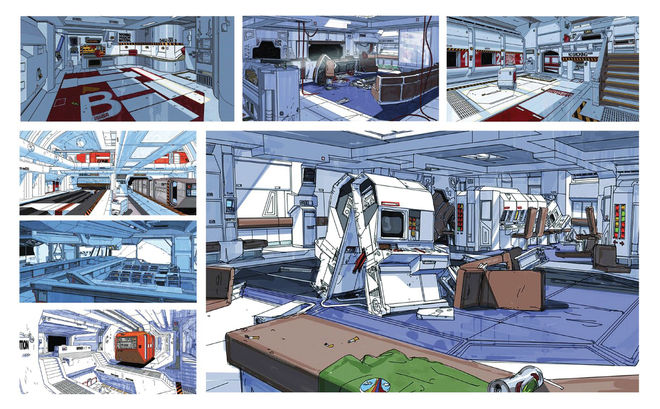 Cobb’s work had a pretty massive influence. We even produced concept art in the same visual style, so we could try and find the “Cobb Solution” to new problems or spaces. The UI overlays weren’t particularly related to Cobb’s work, but everything in-world borrowed quite heavily – I produced signage, branding, crew patches, and general graphic design décor elements, all lifting from Cobb’s and [John] Mollo’s work on Alien, both used and unused.