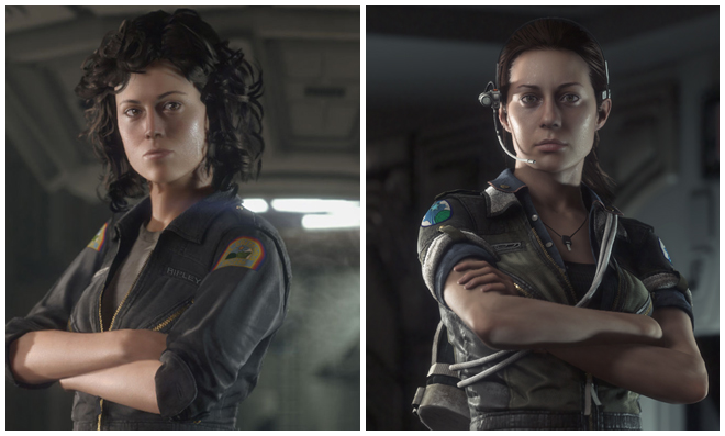 Mother and Daughter: Ellen Ripley (Sigourney Weaver) and Amanda Ripley as they appear in Alien: Isolation