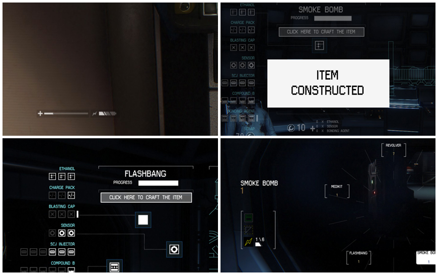 There is a very clear split in the UI design of Alien: Isolation – anything internal to Ripley, UI representing her spatial awareness or memory for example, would be presented as a minimalist overlay, abstracted from the game world. The form would follow the function, and it had to be easy to use and minimalist to look at.