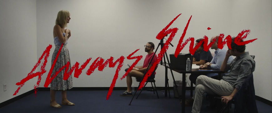 Always Shine's (2016) title lettering by Teddy Blanks superimposed with an audition scene featuring actress Caitlin Fitzgerald