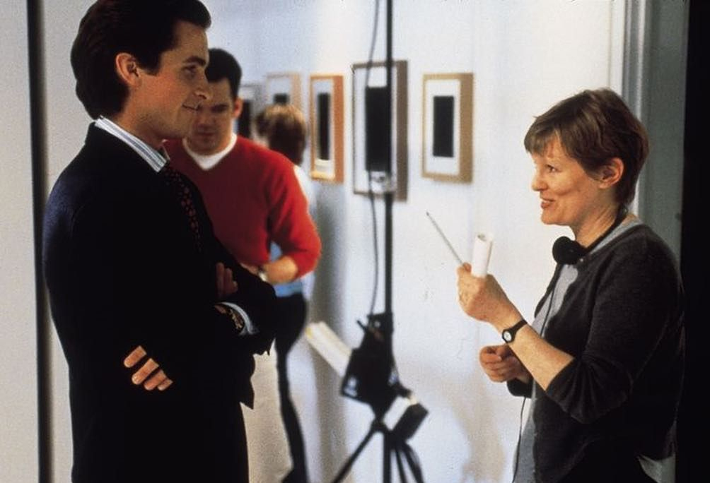 Actor Christian Bale and Director Mary Harron on the set of American Psycho (2000)