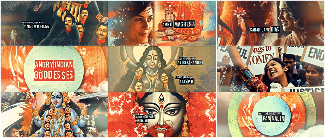 Angry Indian Goddesses is a film that holds an intersectional lens up to contemporary Indian society, taking an unflinching look at gender, sexuality, patriarchy, class, friendship, and all their pressure points. It’s a film bursting with colour and razor-sharp emotion, and so its opening titles must follow suit. The sequence, designed by Mumbai-based studio Plexus, weaves together images of the cast with protest photography and Indian deities in power poses. Likenesses of goddesses like Kali are ubiquitous in India, sold on cards and bookmarks, used in calendars, embroidered on fabrics and painted on walls. It’s surprising, then, that the opening title sequence was heavily altered for its Indian theatrical run. The original version of the sequence, before the film hit the Censor Board, is above — in all its glory.
