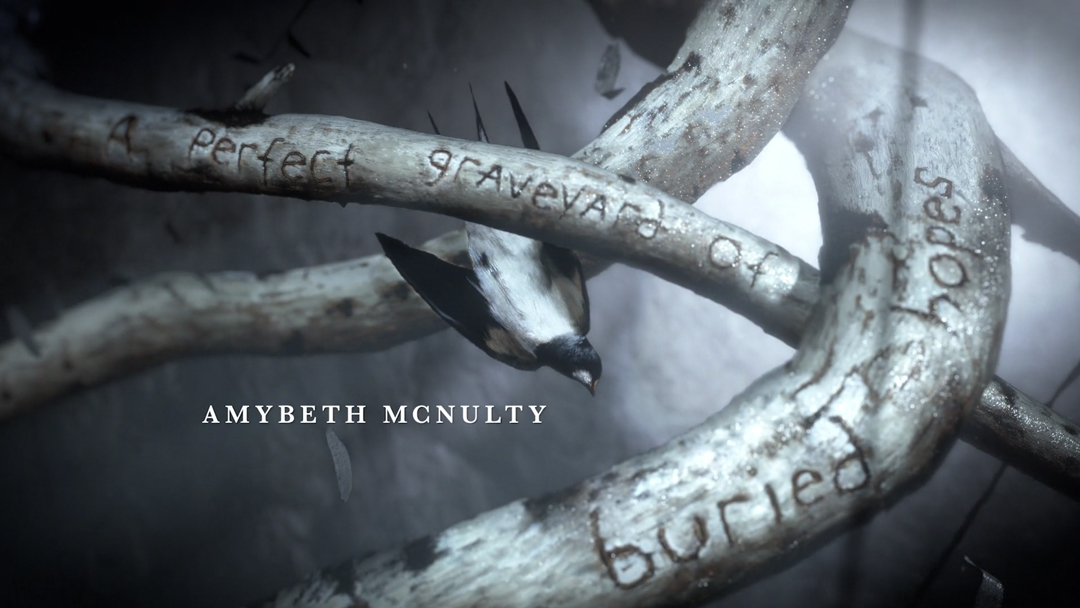 Moira: I would also add that I believe in it. It's so interesting your site is called Art of the Title, because I believe in the art of the title. It was super important to me – as it was on Flesh and Bone, which we filmed very specifically live-action – that titles should be standalone experiences that roil the imagination, that feel like they have a foundation in the show but that are separate, that are their own entity and their own piece of art.