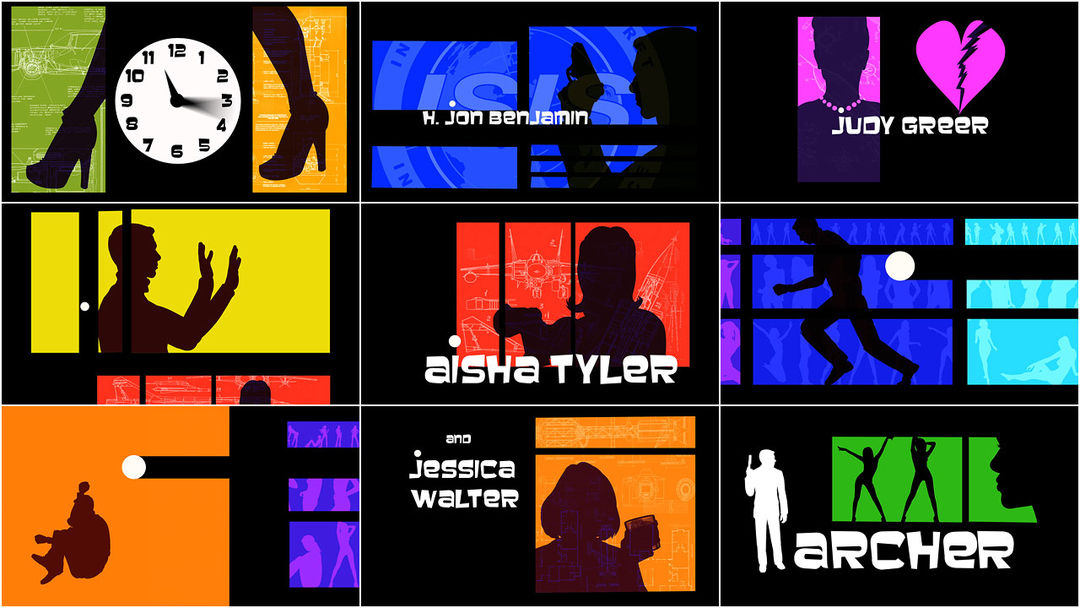 The title sequence of the FX animated series Archer creates the artful illusion of a serious spy-related program. Designed as a direct homage to the Saul Bass cut-out style prevalent in the 1960s, the sequence focuses on a bouncing white dot, fired from main character Sterling Archer’s gun in the first title card. The cast is introduced one by one in a series of connected vignettes that relay character information while propelling the action forward.