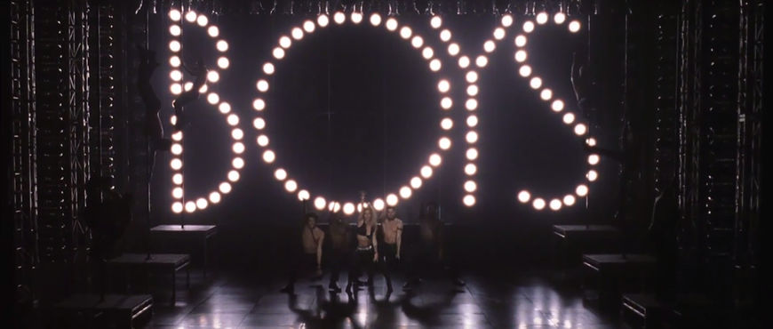 Marguerite: Yeah! Mike really wanted to battle Britney. And so the whole thing was, having it start out like this pop video, and then here he comes, and it’s West Side Story, him with his girls and her with her boys.