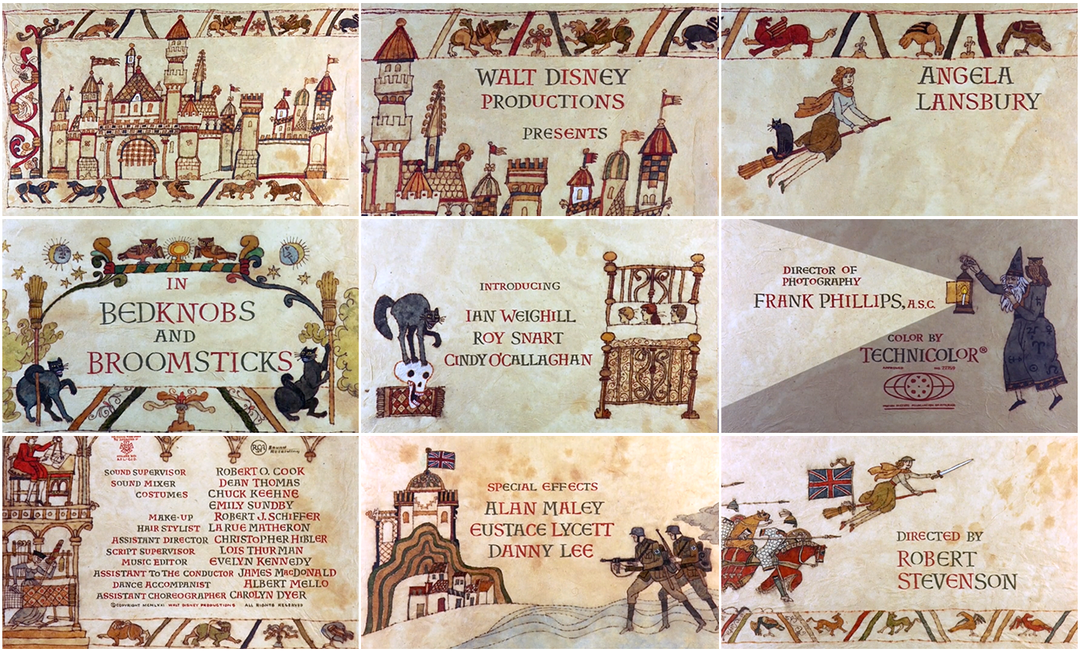 Still from the opening title sequence of Bedknobs and Broomsticks (1971) including the credit for Title Design: David Jonas
