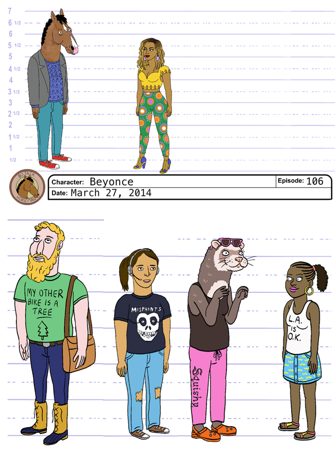 I came on at the very end of that development and made notes, and art directed it. I quickly whipped up the design for BoJack’s swimming trunks.