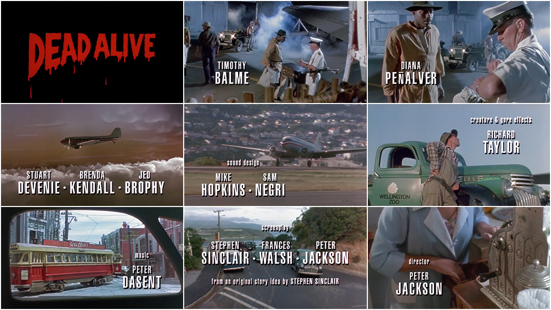 Braindead (AKA Dead Alive) (1992) title card SUPPLEMENTARY: Braindead (1992) end crawl Credits Title Design: Sue Rogers Director of Photography: Murray Milne Music: Peter Dasent Support Art of the TItle Related Evil Dead interview Ernest Scared Stupid interview The Rocky Horror Picture Show summary Candyman interview The Dunwich Horror summary Blacula summary