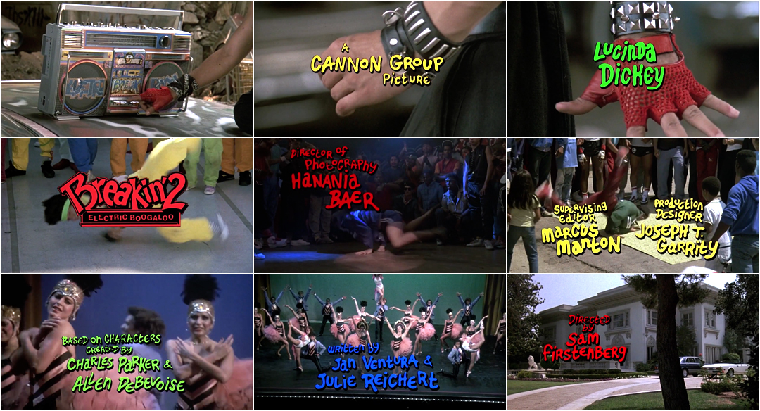Credits Title Designer: Wenden K. BaldwinTitles & Opticals: Modern Film Effects Music: "I Believe in the Beat" by Carol Lynn Townes Support Art of the TItle Related Breakin' title only Do the Right Thing summary Wild Style summary Pump Up the Volume interview Saturday Night Fever summary Times Square summary