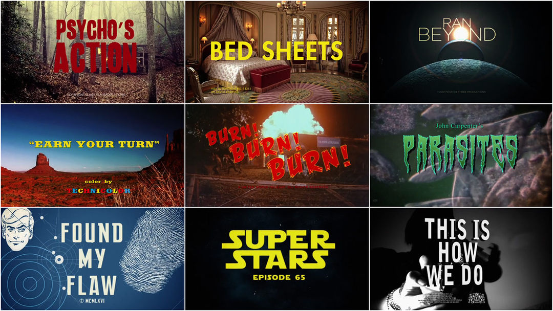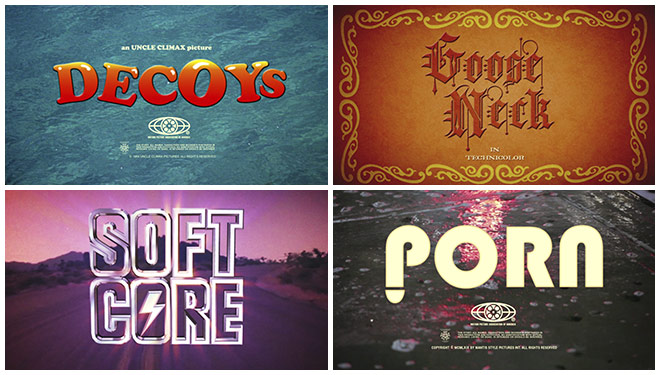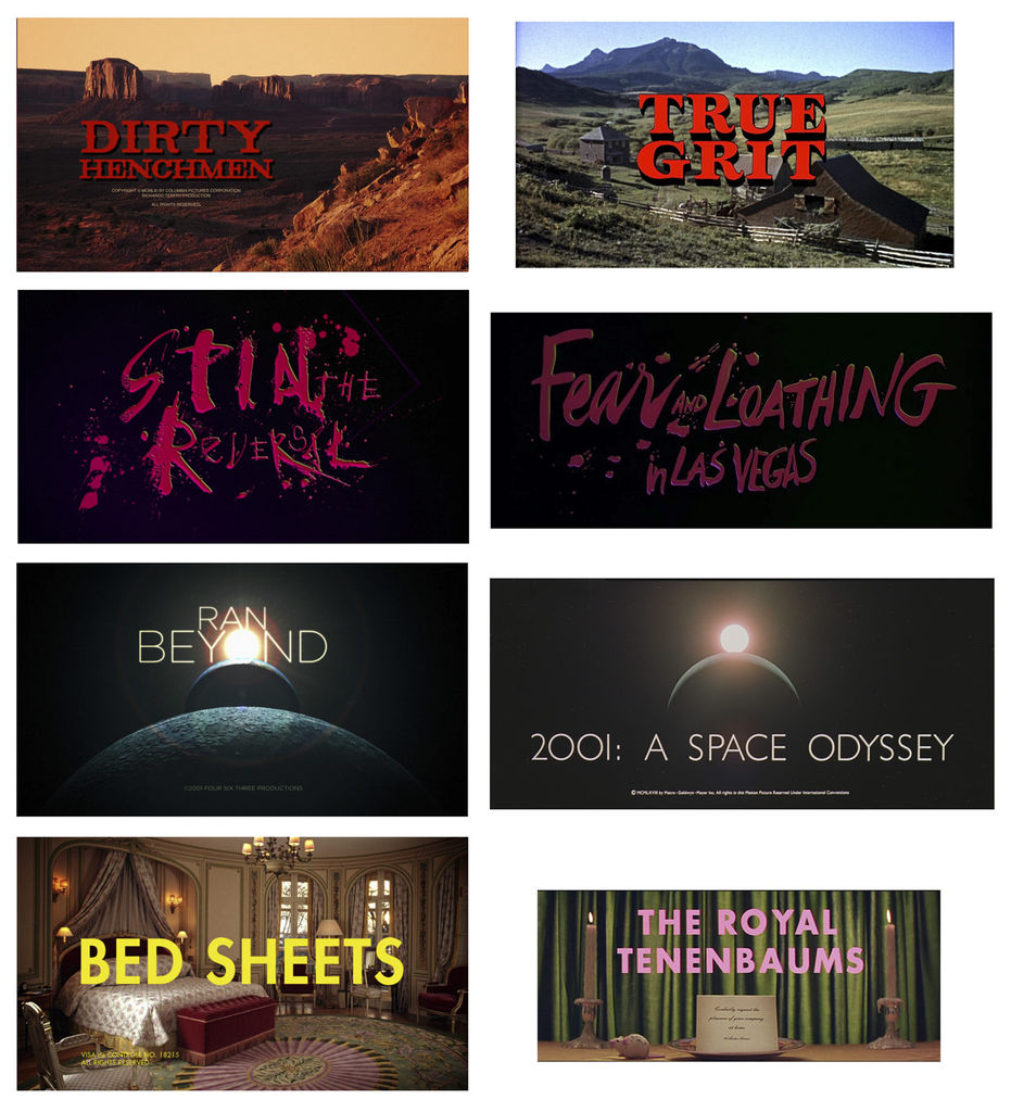 A steady beat of stadium claps sets the stage for Buck 65’s gravelly voice as he weaves a miscellaneous lyrical list in the first verse of his track, “Superstars Don’t Love.” Simultaneously, Travis Hopkins’ fictional title cards stream forward in a blitz of elegant homage. These 69 individually-crafted title cards salute films like 2001: A Space Odyssey, Wild Style, Fear and Loathing in Las Vegas, The Royal Tenenbaums, and others, turning Hopkins’ clear enthusiasm for film and typography into a charming panegyric in the style of the masters.