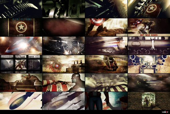 The original concept began about five to six months before we pitched to Marvel. Since Rok!t’s EP, David Garber, had worked with the director, Joe Johnston, on The Wolfman, we wanted to get an early start on conceptualizing the main titles for Captain America. While we were brainstorming, we talked about some of Joe’s previous films, namely The Rocketeer. The art deco look and feel of that film, mixed with the WWII theme, gave us a great launchpad for discussion.