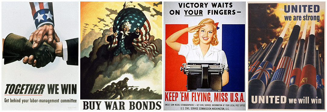They loved the concept, as well as the look, but slowly over several iterations of the designs, Joe started to push us towards using authentic, existing artwork rather than creating our own. These iconic posters tied better to Joe’s vision for the film, referencing the look and feel of the WWII era.