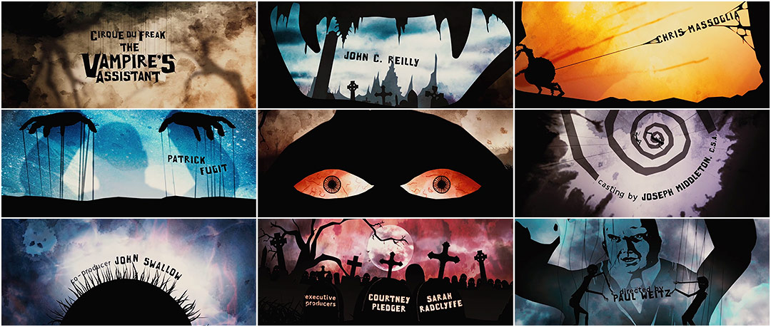 I mean, you don’t want to reveal too much about the plot of the film in the title sequence. As for Cirque Du Freak, it is a graphic opening that introduces six freak show characters and brings them together through the journey of two puppets. I wanted to let the credits play an important role. They become the main actors throughout the sequence and the story is the backdrop.