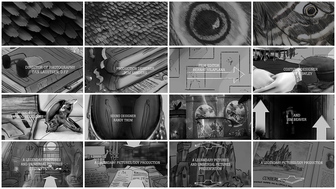 Ron: We pitched one main idea, but because we originally developed and pitched the titles as an opening, it was a little different at first. The only other idea we pitched focused more on the house itself. The original storyboards had the camera moving from outside the house, following vines up and inside where we would be carried through each vignette or scene by the moths.
