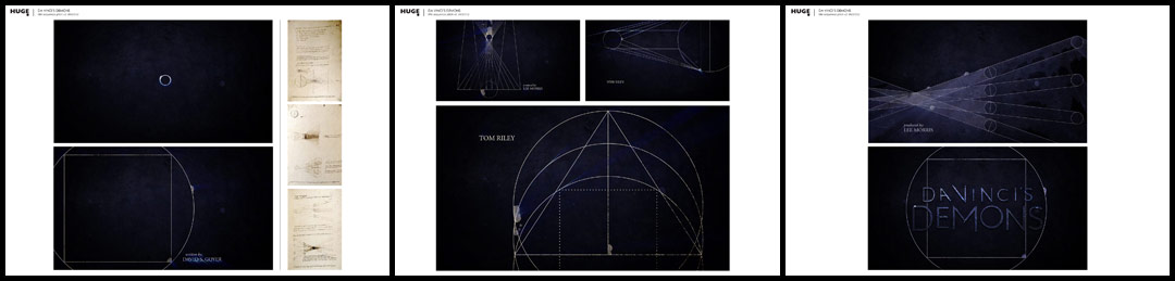 In this, our latest examination of the anatomy of title sequences, Huge Designs assembles a golden ratio of iconic da Vinci sketches and flights of fantasy, brought to real life in a way that only modern day machinations could.
