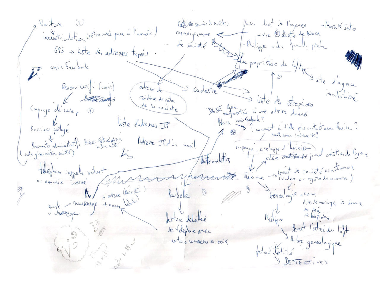 The goal for the opening sequence was to get the audience to want to watch the sequence repeatedly. Ideally, they would notice new details at the beginning of every episode. The investigation is fluid as one clue leads to another; the eye is constantly guided by a common thread which drives you elsewhere (a pen stroke, a mouse cursor, etc.). The investigation has a playful aspect that helps set the tone for the light atmosphere of the series, far from the dramatic or shabby clichés other police TV series can have.