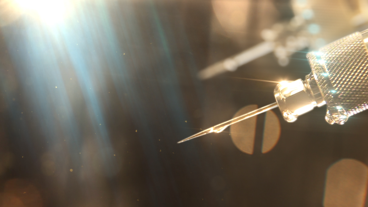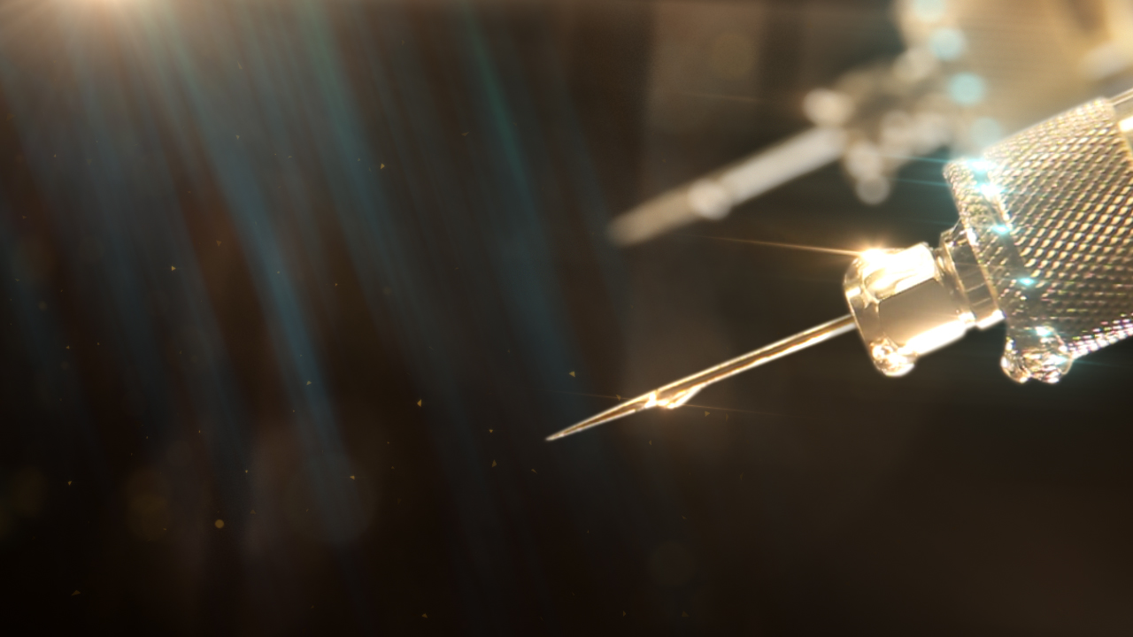 In the final sequence, there are 25 shots, not counting the title cards. Of those 25 shots, 14 are live action, 9 are computer-generated, and two were created in motion graphics using 2D animation on stills and photographed elements. The laser shot, for example, was entirely created from one still of a horse tranquilizer that we shot on our second day. The still was modified in Photoshop and then animated in After Effects.