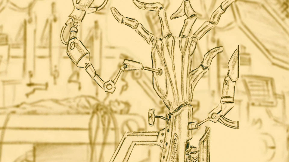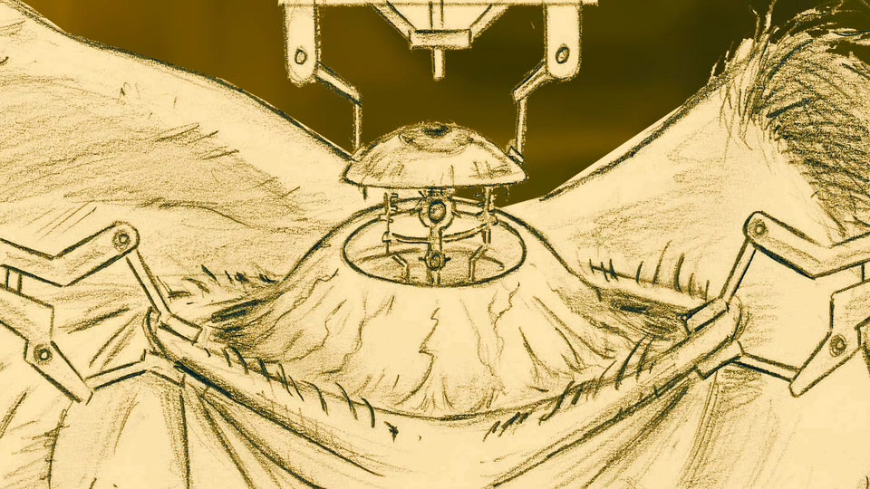 JFD: It started with us at Eidos-Montreal. We knew we wanted a sequence that would tell the story of Adam Jensen’s life being saved on an operating table. The thing is, we didn’t want anything basic or expected. We wanted something more stylish and conceptual. We talked to the guys at Goldtooth Creative and explained our idea as to the direction we wanted to take and they started to pitch really creative ideas.
