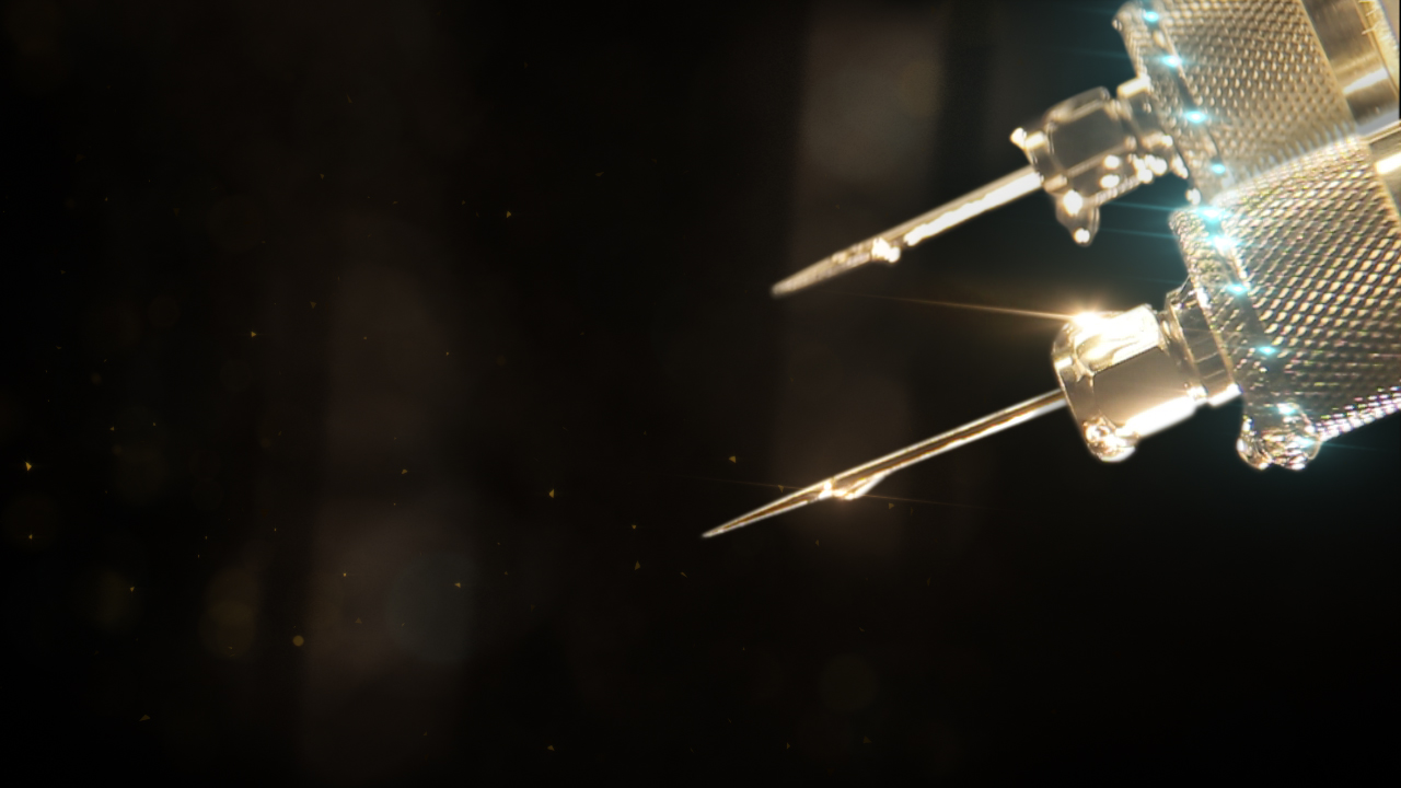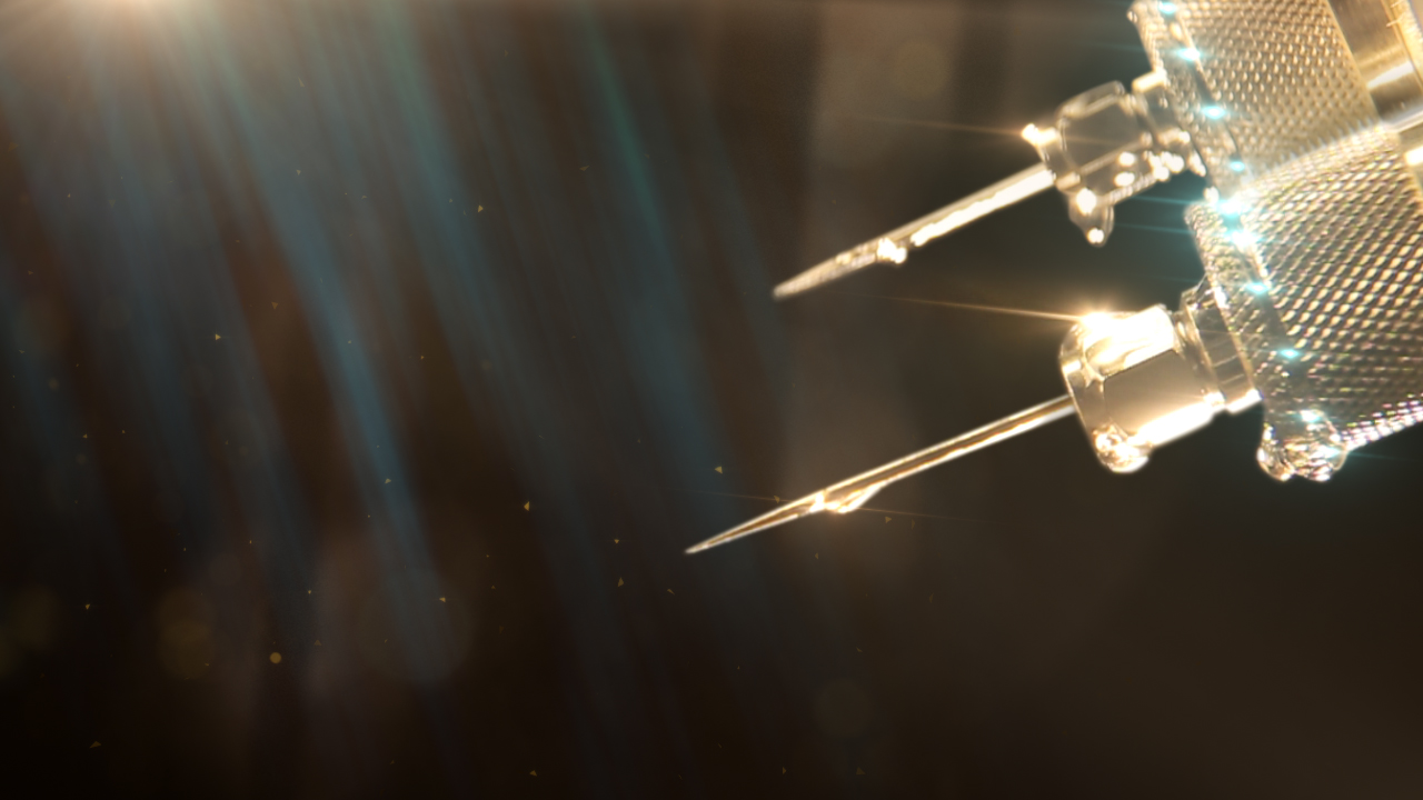 As far as putting it all together, the goal was always to seamlessly blend the CG, motion graphics, and live-action shots to create a surreal, etherized vision of the operation. I worked with Scott, our production designer, to find elements that would fit into the world already defined by the CG shots. Often, Scott created the futuristic surgical tools by taking parts from modern-day computers, household hardware, power tools, and medical supplies.