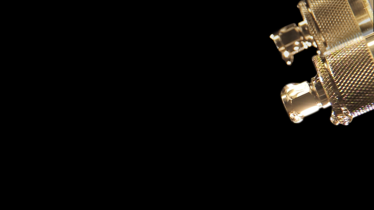 Then with Paal, our DP, we created simple rules that we would also follow when compositing the CG and motion graphics: 1) always light for the black and gold look, knowing that the blacks will be crushed in post, adding cyan accents where possible; 2) shine lights directly into the camera (there are lots of lens flares in the future!); 3) shoot with as many foreground elements as possible with very shallow depth of field in order to hide the boundary between live action and CG elements; 4) add atmosphere and particles to as many shots as possible (scenes with many layers were shot clean and the particles were added in compositing).