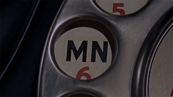 Hitch – who began his film career as a title designer – always recognized the value of strong, thematically appropriate typographic choices and opening sequences that set the scene. The director’s films nearly always featured distinctive title cards and mood-setting credits, and Dial M for Murder was no exception. Here, a slanting serif typeface paints a picture of a marriage gone wrong, the jagged edges evoking the blade of a well-worn knife. The fitting backdrop for the opening is the dial of an old-fashioned rotary telephone, a large blood red “M” replacing the number six. In true Hitchcockian fashion, the phone used for the sequence is not quite what it appears to be. The cumbersome 3D camera system used for the film made extreme close-ups impractical, so Hitch commissioned the construction of an enormous, four-foot-tall prop telephone to be used for specific shots. The same oversized phone is used later in the movie – complete with giant fake finger – when Milland’s character makes a pivotal call. Hitchcock, as one might expect, was not a fan of the 3D, saying famously, “It's a nine-day wonder, and I came in on the ninth day.”
