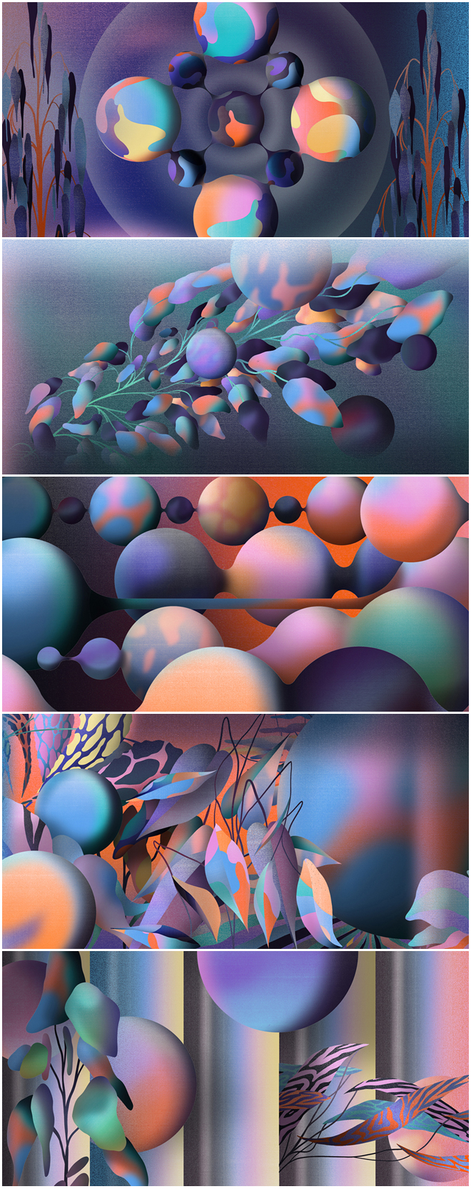 I started creating some mood images that had to form the base for the 2017 identity and title sequence. I designed a large library of globes and plants before we even started thinking about a storyboard.