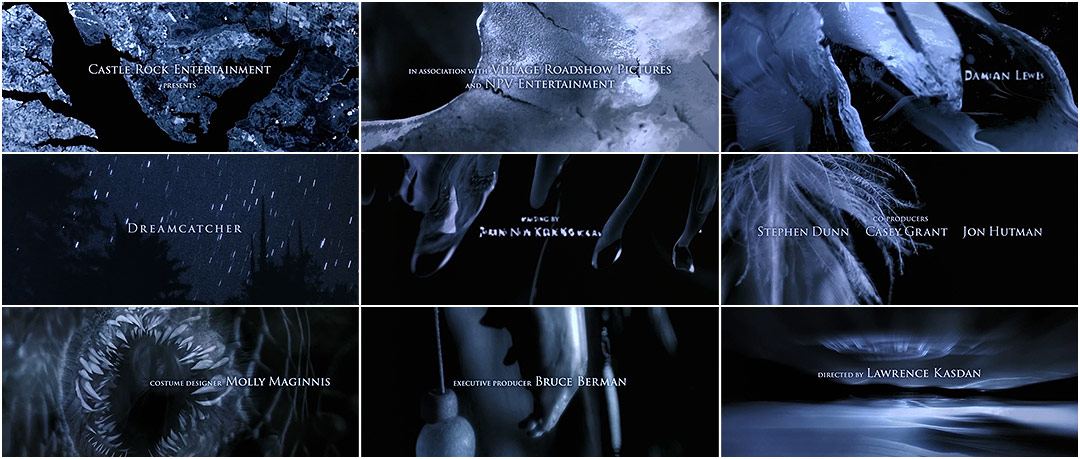 The groaning static of an echo long lost ushers in Kyle Cooper and Imaginary Forces' gracefully gelid title sequence to Lawrence Kasdan's 2003 flop, Dreamcatcher. And while the film itself might be shambolic, baffling – alright, downright crummy – one thing is clear: this sequence is about tone. As we descend into a steely, ticking beat and a constellation of synthesizer notes tinkles along, elaborate webs of sinew, frosted feathers, and snow-capped mountain ranges fuse and tessellate, finally resolving into unswerving emptiness, into tundra. Chilled to the marrow by this expertly crafted farrago of natural wonders, we are nowhere near prepared to experience Morgan Freeman call every man in sight “Bucko.”