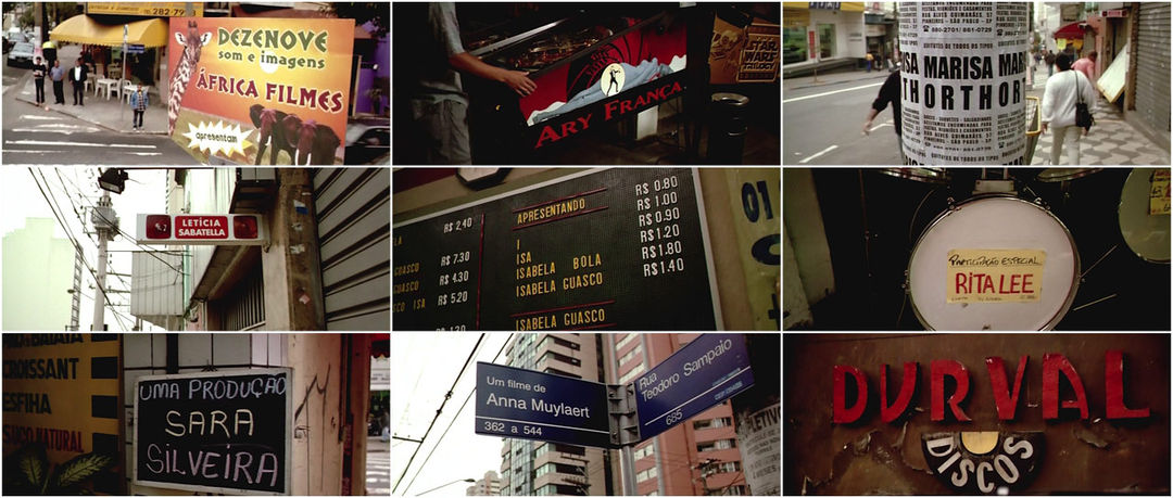 This sequence was treated like a short film inside the film. We rehearsed it many times, over one month. We chose the city block where it would be done and started experimenting. I used a video camera and walkman and walked the whole way, feeling the music and choosing good places to put the names. Then we would look at it together with the crew, and the art director would give me the ideas of the places we could place the credits (the concept was to put the names in places where there normally would be something written; the names should not shine on screen, they were to be just part of the city.)