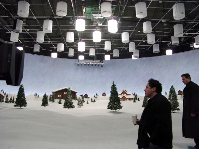 Charlie: Up there, we did a motion control shot. We shot a background plate of Will Ferrell first walking with the stand-in, and then we would take the stand-in out and have Will repeat the scene that we would then composite our snowman onto. Jon wanted the snow rolling away in front of the animated character. We had to actually match the movement of the snow. The snow had to be animated!