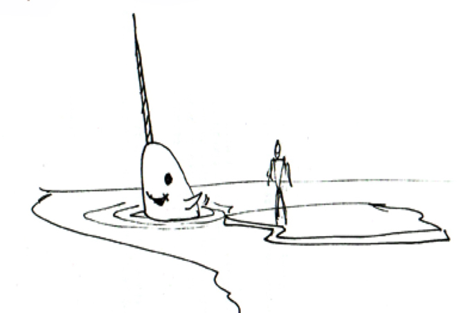 Stephen: Well, after going around the block with a bunch of different designs, we looked at Jon’s original sketch. He did a little quickie doodle of what he wanted the narwhal to look like and after Charlie brought caricatures of the narwhal, we went right back to what he did.