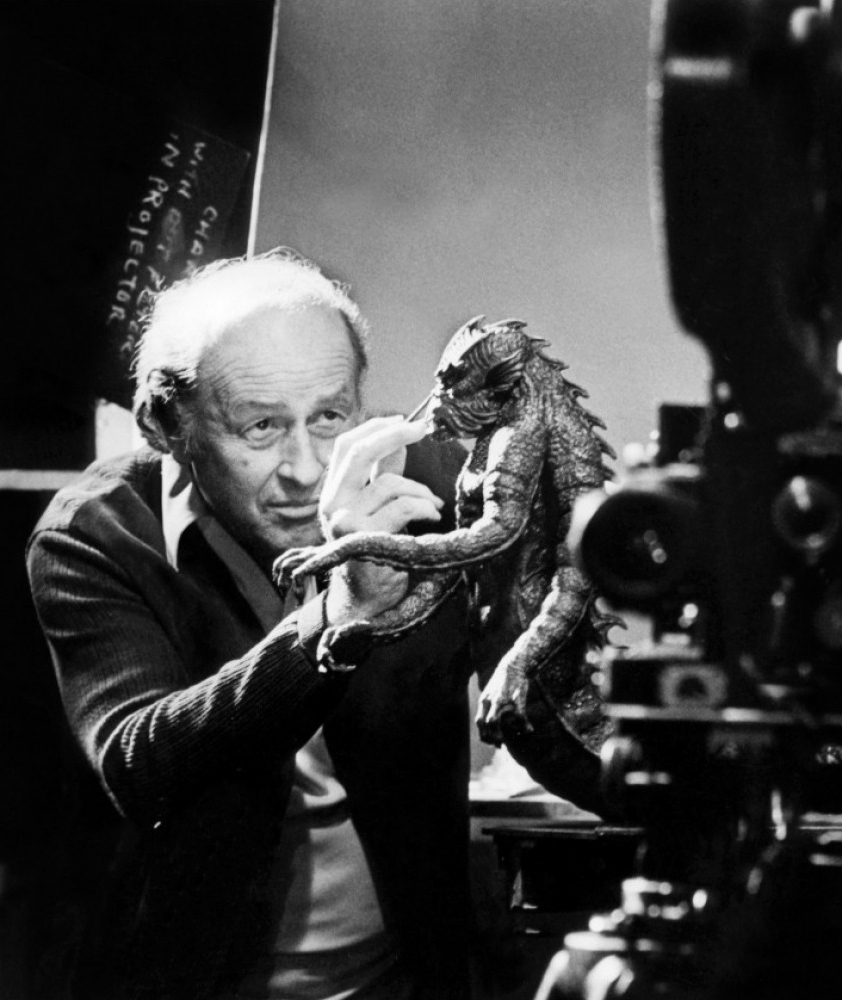 Visual effects creator Ray Harryhausen (1920 – 2013) works on a miniature of the Kraken, featured in Clash of the Titans (1981)